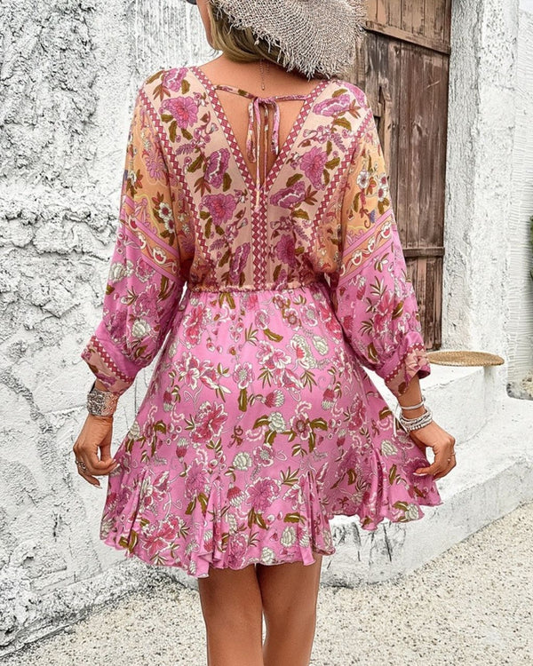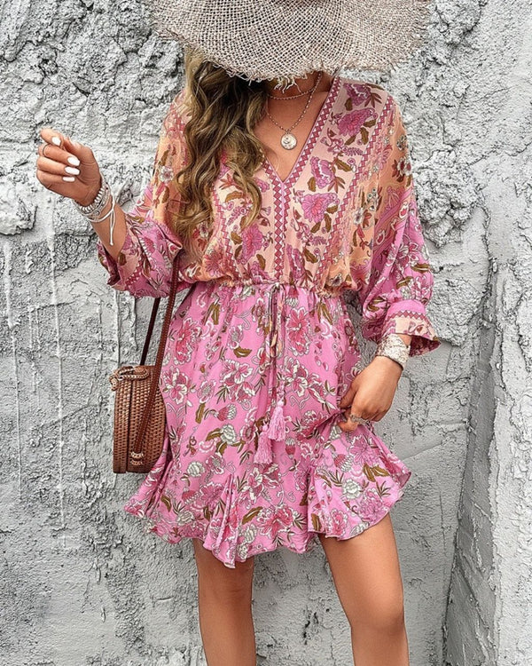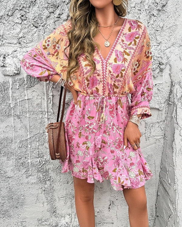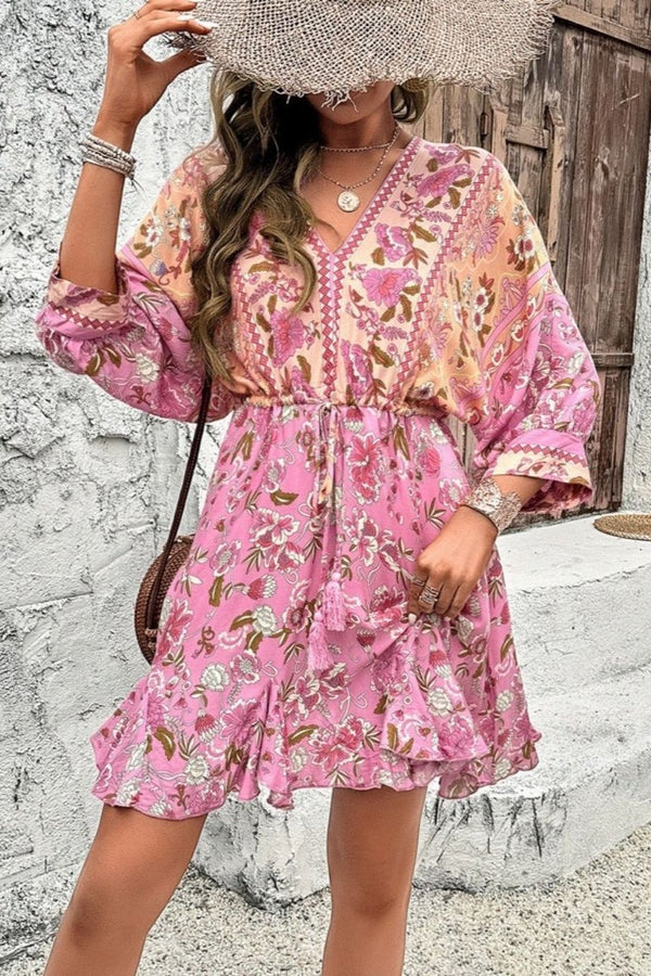 The Georgia Floral Drawstring dress boasts a flattering V-neck, vibrant floral print, and a drawstring waist that hugs your curves in all the right places. Featuring three quarter sleeves and falling just above the knee, this piece offers a relaxed...